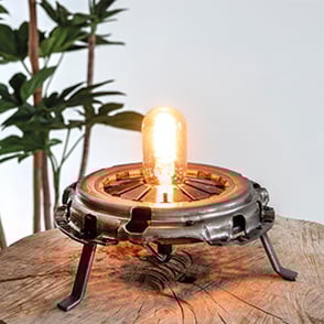 Mancave Store heeft een altijd wisselende voorraad van handgemaakte unieke tafellampen. Onze industriële tafellampen worden bijna geheel gemaakt van gerecyclede materialen, dit wordt ook wel Upcycling genoemd. Iedere tafellamp heeft zijn eigen unieke uiterlijk, dit komt omdat nooit exact dezelfde materialen gebruikt kunnen worden in de gehele serie. Het kan dus voorkomen dat er een kleine afwijking aanwezig is op het gebied van uiterlijk, vorm of gewicht.